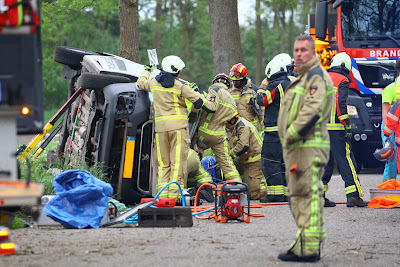 Het ongeluk gebeurde tussen Exloo en Valthe. Meerdere brandweerwagens, een ambulance en een traumahelikopter zijn ter plaatse.